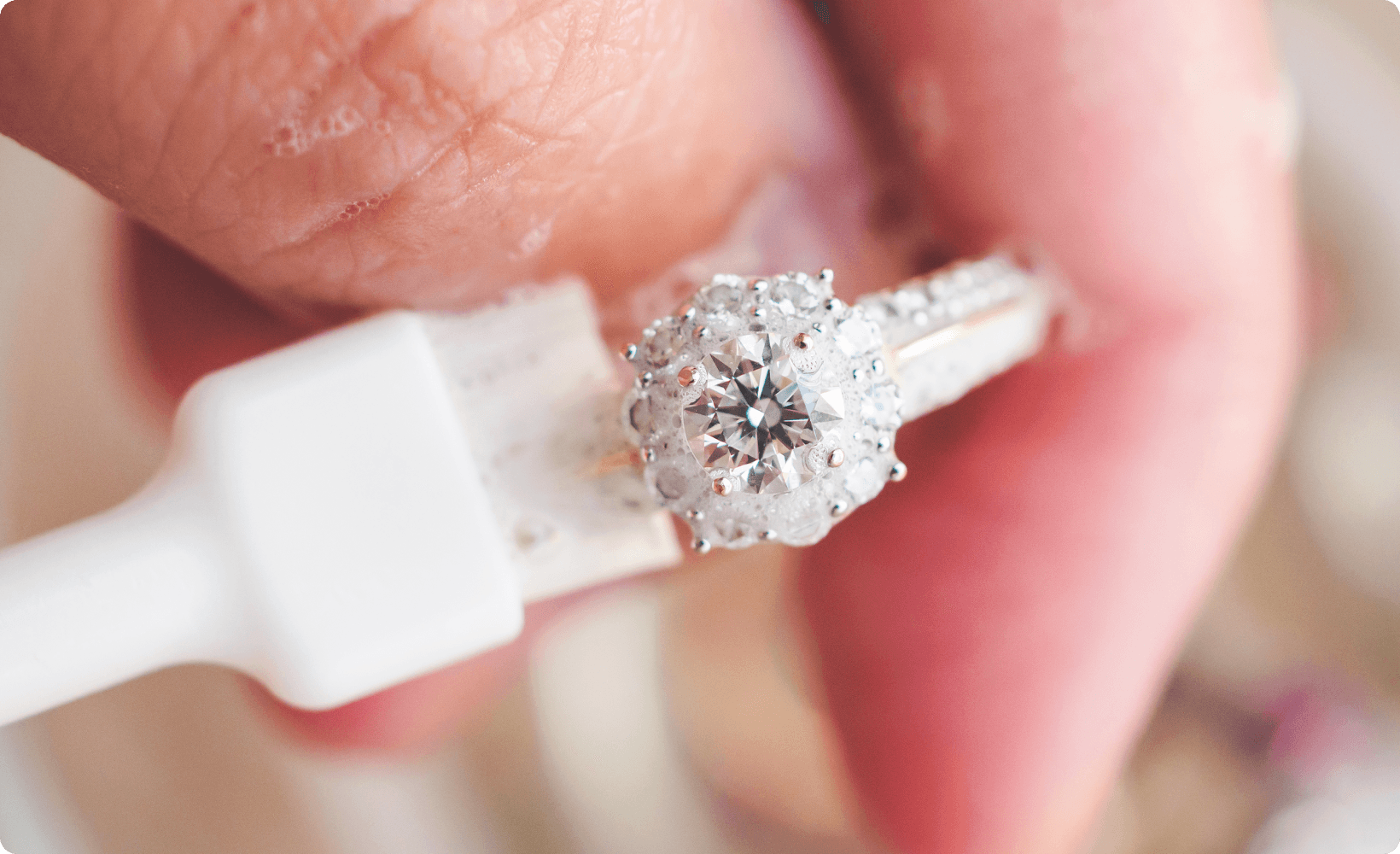 This soap-water-brush approach can be used to clean yellow, white, and rose gold jewellery.